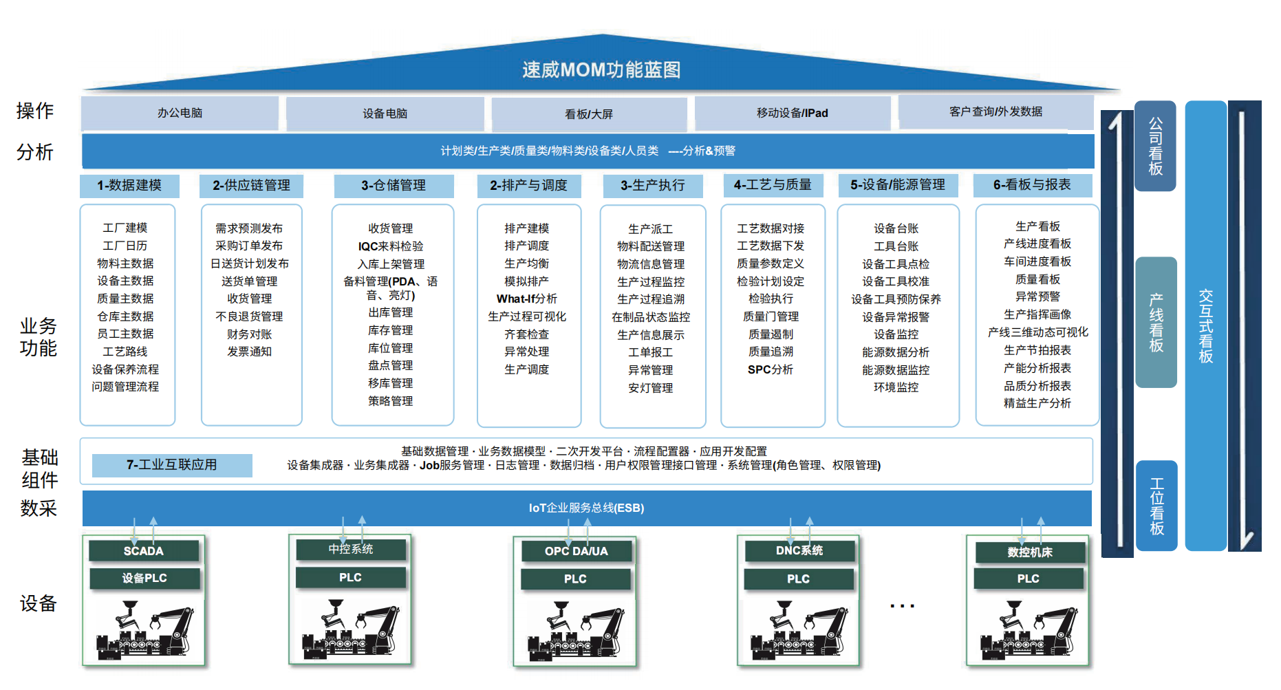 速威MOM-一體化的制造運(yùn)營(yíng)管理平臺(tái),可以分三層架構(gòu):