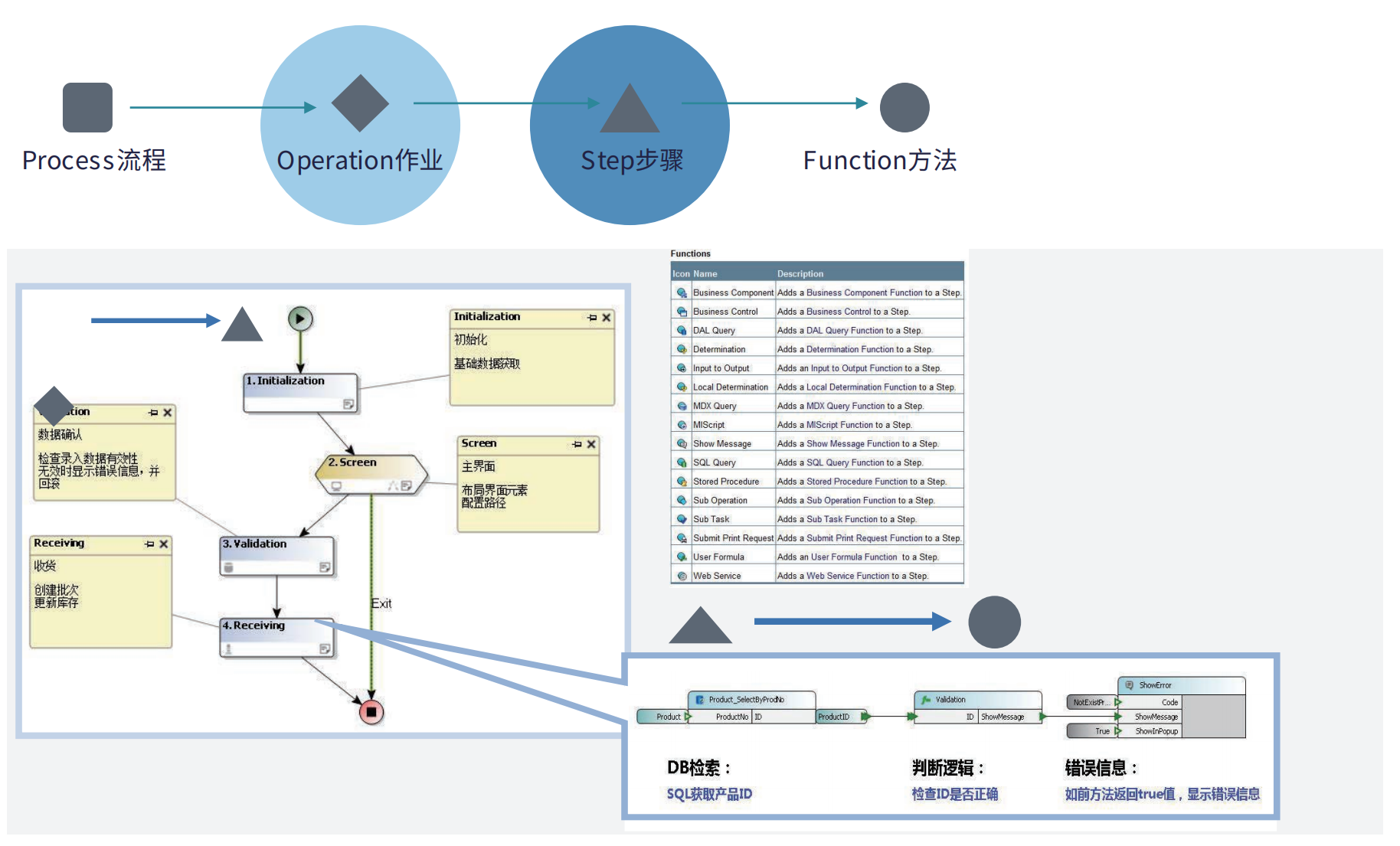速威MOM制造執(zhí)行專用業(yè)務(wù)框架和數(shù)據(jù)模型支持,使用Process Builder柔性高效的流程設(shè)計(jì)、開發(fā)、管理工具,擁有500多種標(biāo)準(zhǔn)業(yè)務(wù)組件和更高的系統(tǒng)間交互(ERP、PLM等外部信息系統(tǒng)、現(xiàn)場(chǎng)設(shè)備等),而且支持平板和手持終端等便攜設(shè)備界面最優(yōu)化。