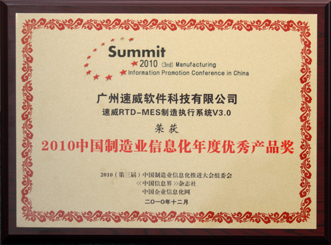 2010中國制造業(yè)信息化年度優(yōu)秀產(chǎn)品獎(jiǎng)