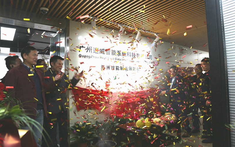 ▲速威智能總經(jīng)理郭總與分公司總經(jīng)理及合作伙伴揭牌喜迎喬遷