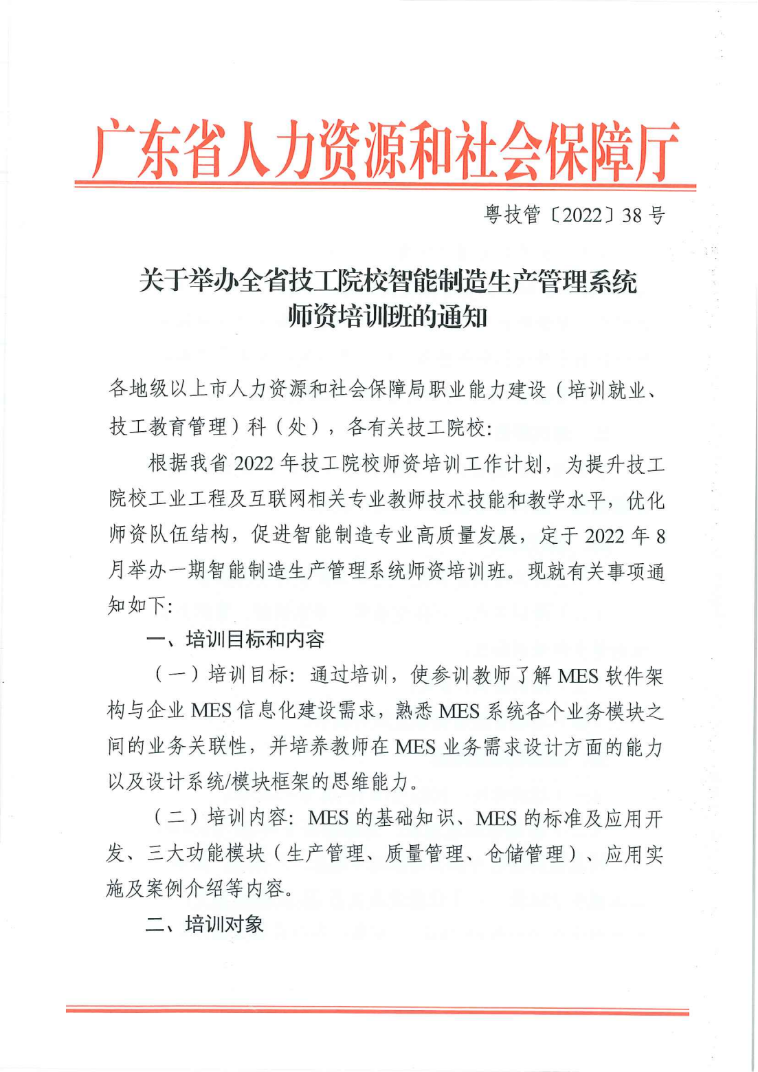 廣東省技工院校智能制造生產(chǎn)管理系統(tǒng)師資培訓(xùn)班,是由廣東省人力資源和社會(huì)保障廳指導(dǎo),為全省各技工院校工業(yè)工程及互聯(lián)網(wǎng)、工業(yè)機(jī)器人、智能制造相關(guān)負(fù)責(zé)人、骨干教師等進(jìn)行專業(yè)培訓(xùn)。