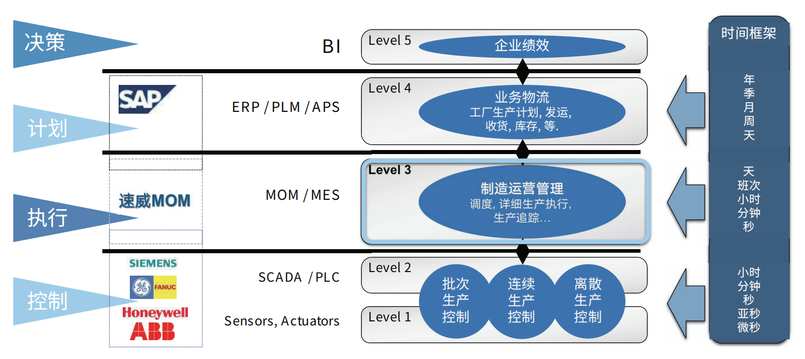 速威MOM-一體化的制造運(yùn)營(yíng)管理平臺(tái),可以分三層架構(gòu):