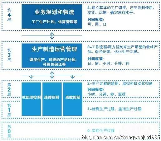 我們?cè)诙x MES 技術(shù)及其在改進(jìn)卓越制造的過(guò)程中所扮演的角色時(shí),其中最重要的是 ISA-95 標(biāo)準(zhǔn)。該標(biāo)準(zhǔn)由國(guó)際自動(dòng)化協(xié)會(huì)(ISA)聯(lián)合生產(chǎn)制造業(yè)協(xié)會(huì),以及包括控制、ERP 和 MES 等多個(gè)行業(yè)系統(tǒng)供應(yīng)商共同開(kāi)發(fā)制定而成。ISA-95 利用生產(chǎn)運(yùn)營(yíng)管理(MOM),來(lái)描述 MES 的概念,在某種程度上該詞具有更廣泛含義;但是兩者其實(shí)都在嘗試,為商務(wù)物流軟件以及生產(chǎn)制造運(yùn)營(yíng)軟件之間的信息交換建模。它們還為軟件執(zhí)行的活動(dòng)、以及生產(chǎn)制造運(yùn)行系統(tǒng)內(nèi)部的信息交換建模。下圖描述了 ISA-95 中規(guī)定的生產(chǎn)制造過(guò)程中決策制定的各個(gè)層級(jí)。