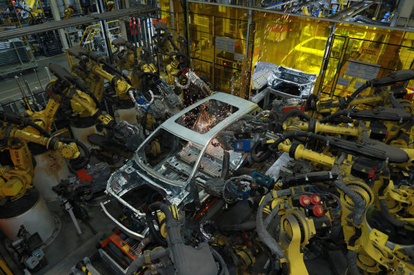 曾經(jīng),流水線的生產(chǎn)方式讓工業(yè)生產(chǎn)的效率幾何式的上升,而現(xiàn)在最能提高生產(chǎn)效率和安全性的無疑是自動化生產(chǎn)。武漢工廠的車身車間擁有773臺世界先進的Global 3+機器人,焊接自動化率是100%,而它的油漆車間內(nèi)外表面油漆的噴涂也100%是由機器人作業(yè)的。