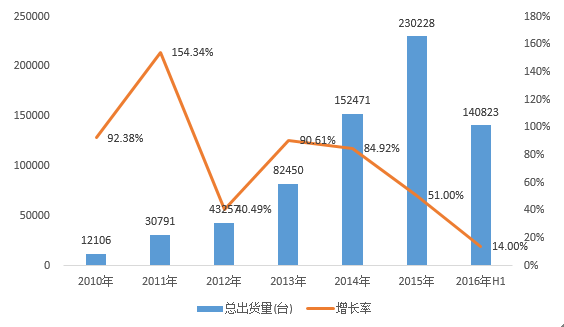 圖表:2008-2015年全球3D打印設(shè)備出貨量增長情況