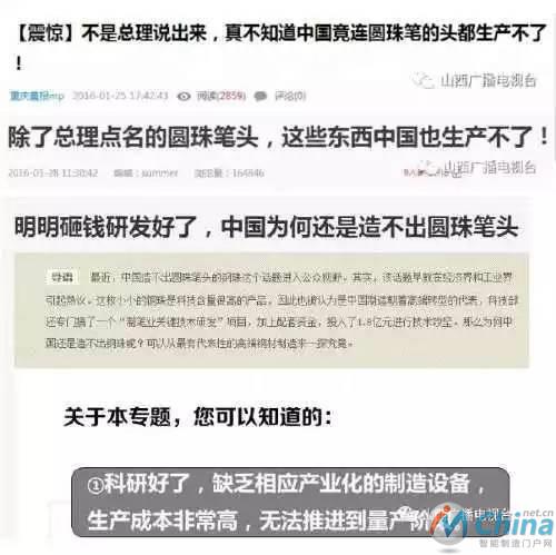 如果不是李克強總理說出來,估計好多人都不知道。3000多家制筆企業(yè)、20余萬從業(yè)人口、年產(chǎn)圓珠筆400多億支……中國已經(jīng)成為當之無愧的制筆大國,但一連串值得驕傲的數(shù)字背后,卻是核心技術和材料高度依賴進口、劣質(zhì)假冒產(chǎn)品泛濫的尷尬局面,大量的圓珠筆筆頭的“球珠”還需要進口。