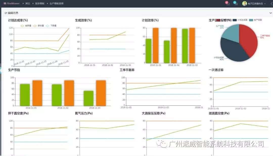 工廠可通過MES數(shù)據(jù)采集和分析功能全面收集車間的生產(chǎn)進度和實時生產(chǎn)數(shù)據(jù),對這些數(shù)據(jù)進行有效的挖掘、分析,并對計劃達成率、生產(chǎn)品質(zhì)良率、班組人員效率進行實時分析。