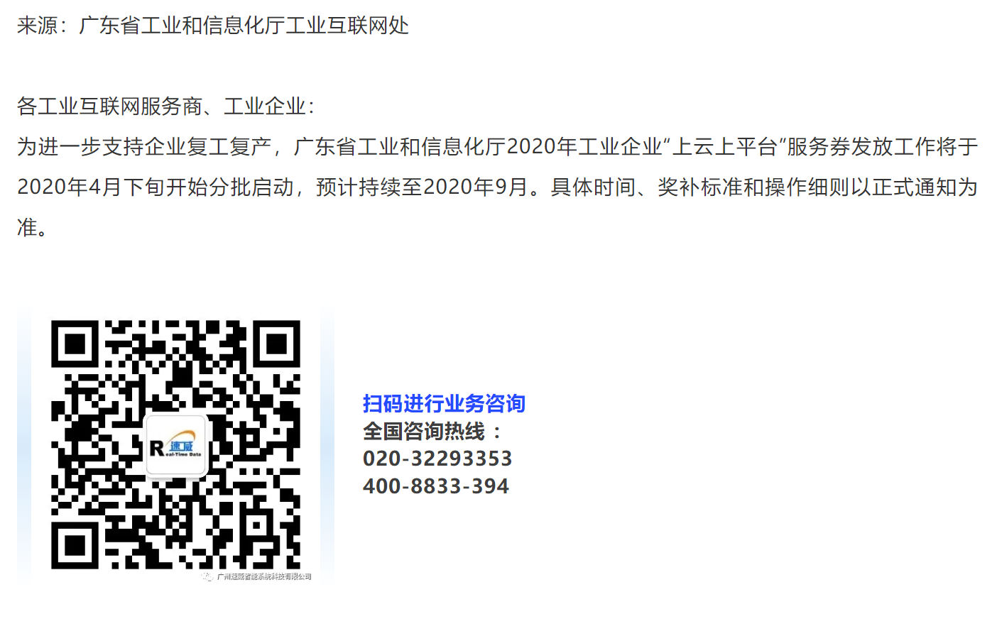 關于開展2020年工業(yè)企業(yè)“上云上平臺”服務券發(fā)放工作的預通知