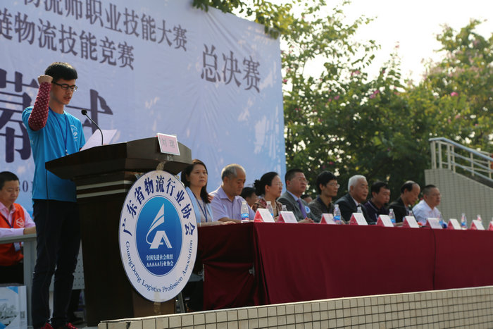 本次大賽開幕式由承辦單位——廣東省交通運輸技師學院劉珺副院長主持。閻子剛院長致歡迎辭。參賽選手代表涂云塾、裁判長何望分別代表選手、全體裁判員宣誓。本次大賽的冠名單位--廣州速威智能系統(tǒng)科技有限公司郭孔快董事長就物流信息化和裝備智能化進行發(fā)言。