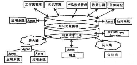 從模型中可看出,在面向?qū)ο蟮膽?yīng)用中,每個(gè)對(duì)象都使用自身具有的功能和方法來操作數(shù)據(jù),分別完成系統(tǒng)的各種功能。而其它功能如:工作流管理,產(chǎn)品數(shù)據(jù)管理,知識(shí)管理等都從功能邏輯中分離出來。通過對(duì)象請(qǐng)求代理(ORB)(如CORBA,COM/DCOM)可使不同軟件商的對(duì)象相互交換信息和進(jìn)行互操。NIIIP/SMART所描述的MES技術(shù)模型非常適合未來MES的商業(yè)應(yīng)用特征,一個(gè)分布式對(duì)象框架可以讓各種數(shù)據(jù)和功能邏輯在使用時(shí)變得更加緊密。而且,通過使用小巧簡練的對(duì)象,可使系統(tǒng)模型在不破壞相互關(guān)系的情況下方便地進(jìn)行客戶化定義。這些特征使實(shí)施的MES費(fèi)用較低同時(shí)又具有良好的適應(yīng)性和柔性。隨著計(jì)算機(jī)技術(shù)的發(fā)展,越來越多的MES、ERP、控制系統(tǒng)、產(chǎn)品數(shù)據(jù)管理、供應(yīng)鏈管理和客戶關(guān)系管理都是以對(duì)象的方式來編寫代碼的。只要它們遵守統(tǒng)一的ORB,不管它們哪個(gè)開發(fā)商提供,都可以進(jìn)行無縫地集成。現(xiàn)有的應(yīng)用系統(tǒng)只要按正確的方法進(jìn)行封裝也同樣能實(shí)現(xiàn)系統(tǒng)的即插即用。通過引入智能代理可以有效地實(shí)現(xiàn)分布式MES的協(xié)同工作,滿足虛擬企業(yè)中MES應(yīng)用的要求。從而實(shí)現(xiàn)敏捷制造模式對(duì)信息系統(tǒng)的要求,即系統(tǒng)的可重構(gòu),可重用和可擴(kuò)展特性。