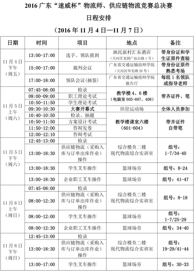 2016廣東“速威杯”物流師、供應鏈物流競賽總決賽日程安排