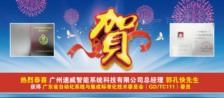 熱烈恭喜廣州速威智能系統(tǒng)科技有限公司總經(jīng)理郭孔快先生獲得廣東省自動化系統(tǒng)與集成標準化技術(shù)委員會(GD/TC111)委員